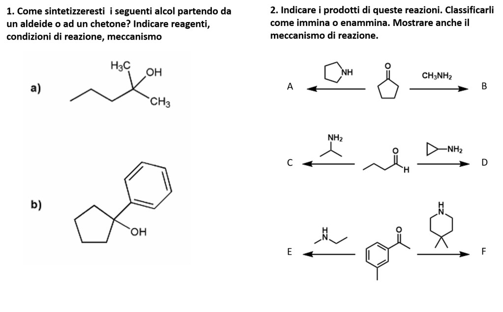 B• Il ciclopentanone reagisce con un’ammina primaria e forma una immina.