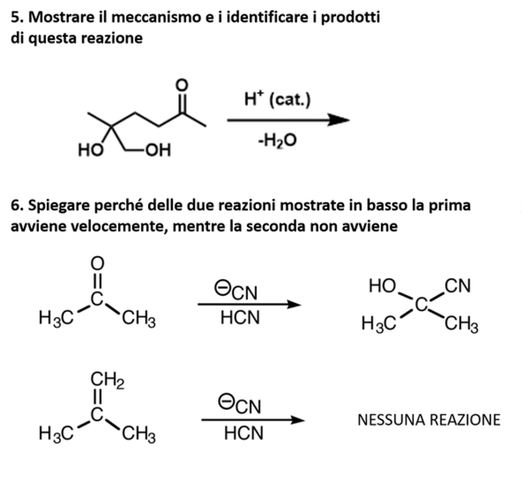 La prima reazione può avvenire velocemente, poichè l’acido andrà a protonare l’ossigeno rendendo più elettrofilo il carbonio.