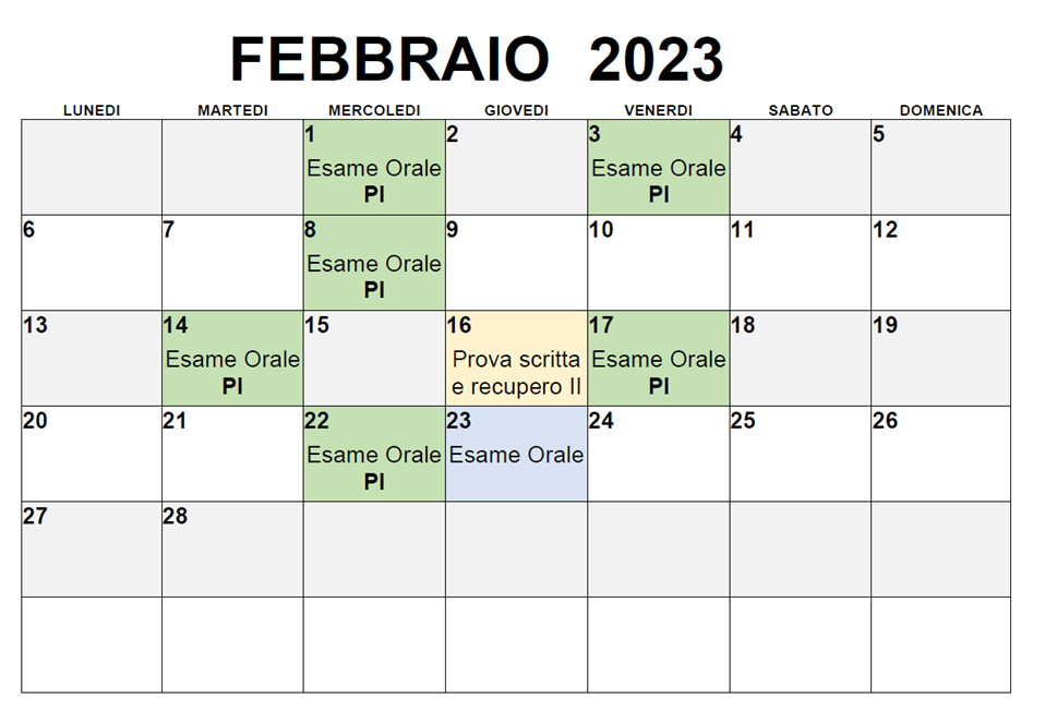 Tutti coloro che supereranno la prova scritta saranno automaticamente prenotati per l’esame orale successivo (indicato in azzurro sul calendario); non sarà quindi necessaria la prenotazione.