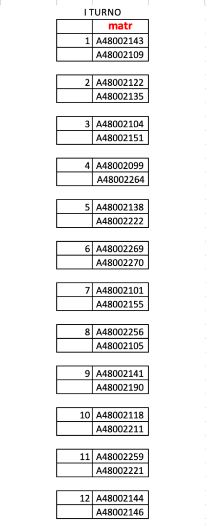 I TURNO (I semestre: 31-ott 21-nov 12-dic)