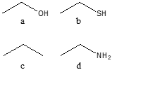 a) CH3CH2CH2SH b) CH3CH2CH2NH2 c) CH3CH2CH2CH3 d) CH3CH2CH2OH