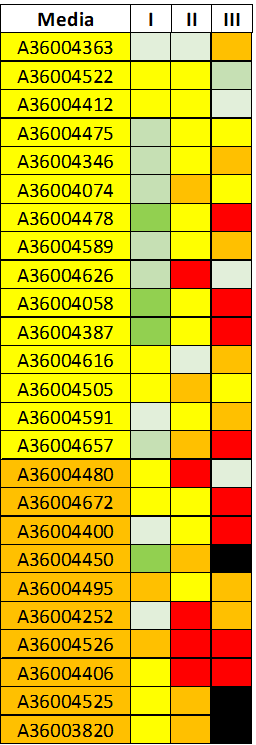 Gli studenti che fanno parte di questo gruppo sono VIVAMENTE INCORAGGIATI a rivedere gli argomenti oggetto delle prove in questione. Allo stesso modo, sono incoraggiati ad agire al più presto in questa direzione coloro che, pur essendo stati ammessi alla quarta prova con una media sufficiente, hanno dimostrato una scarsa conoscenza degli argomenti della terza prova (vedere caselle gialle, arancioni e rosse del gruppo precedente). Si ricorda che è possibile chiedere il supporto della docente.