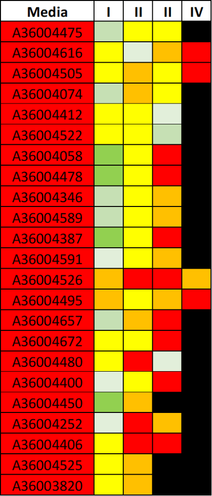 La casella relativa alla media è quella che contiene la matricola. Le altre caselle fanno riferimento a ciascuna prova sostenuta (è dunque necessario guardare la IV per avere informazioni sull’esito dell’ultima prova).