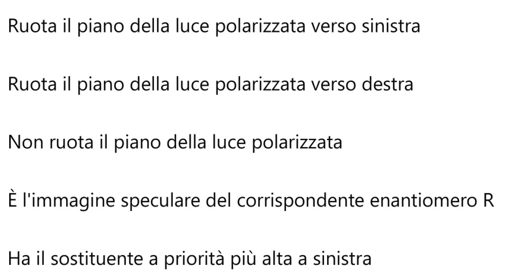 13) Quale delle seguenti affermazioni è vera per qualsiasi enantiomero S?
