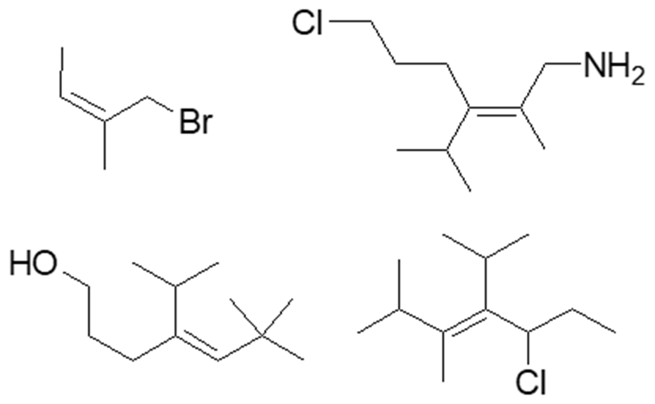 8. Dire se le strutture riportate a destra sono isomeri conformazionali, isomeri geometrici, isomeri ottici, isomeri costituzionali, o lo strutture identiche rispetto alla seguente struttura a segmenti:
