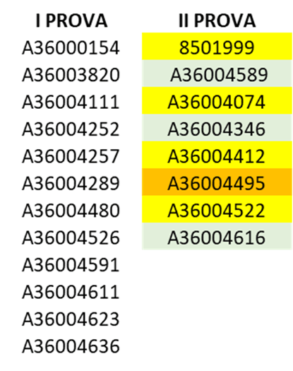 Di seguito sono riportati gli studenti che sono ammessi a sostenere la I o la II prova di recupero (in base alle prenotazioni effettuate) in data 25/01.