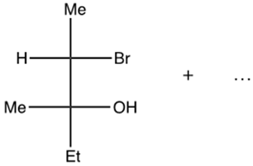 2. Partendo dall’opportuno alchene, illustrare il meccanismo di reazione della sintesi del seguente composto. Indicare eventuali altri prodotti fornendo per tutti il nome IUPAC completo di stereochimica.