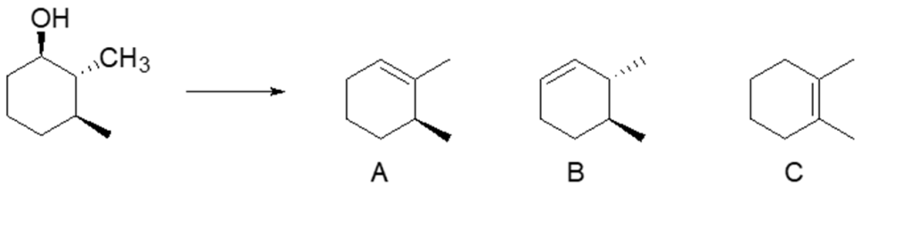 6. Proporre un meccanismo plausibile per la formazione dei seguenti alcheni a partire dall’alcol mostrato, a seguito di una reazione di disidratazione acido catalizzata
