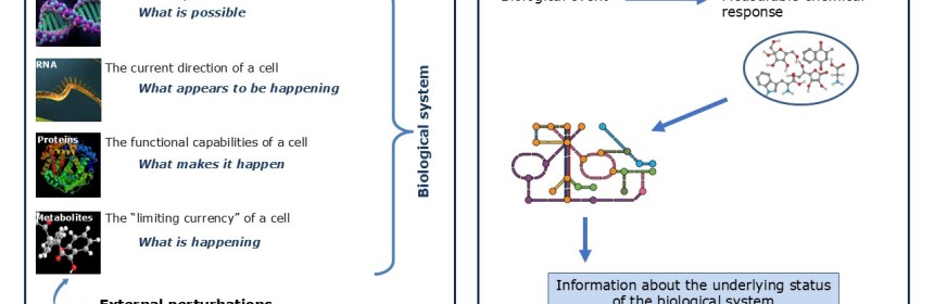 Del resto, la metabolomica si colloca all’interfaccia tra la chimica e la biologia, in quanto ciascun fenomeno biologico produrrà una risposta chimica misurabile e la determinazione delle variazioni osservate fornirà informazioni sullo stato del sistema biologico in analisi. Inoltre, andando a misurare quelli che sono i prodotti finali dell’espressione genica, ossia i metaboliti, fornisce informazioni essenziali su quello che è il fenotipo e la relazione di quest’ultimo col genotipo.