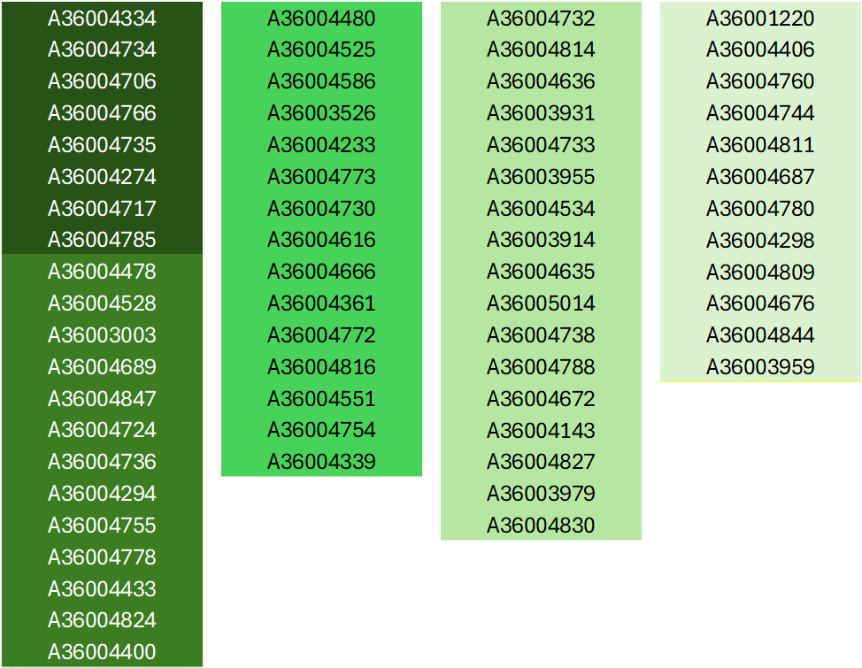 - prima fascia (verde molto scuro/matricola in bianco): sarà possibile prendere visione del compito mercoledì a lezione nel corso della pausa;