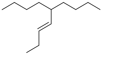 Se sono, invece, presenti due catene della stessa lunghezza, la catena principale sarà quella che contiene il doppio legame. Ad esempio, la molecola seguente sarà un 5-butilnon-3-ene.