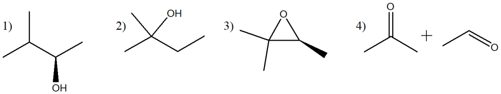 8) Disegnare la formula di struttura degli alcheni che portano alla formazione dei composti sotto riportati per reazione con ozono, seguita da trattamento con dimetilsolfuro.