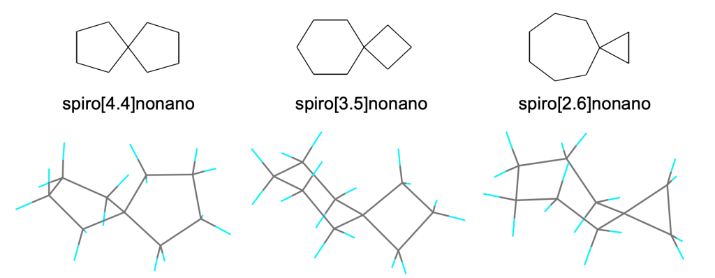 Per distinguere tra tutti i possibili isomeri, il numero di atomi di carbonio in ogni anello (escluso l’atomo di carbonio in comune) è indicato tra parentesi quadre
