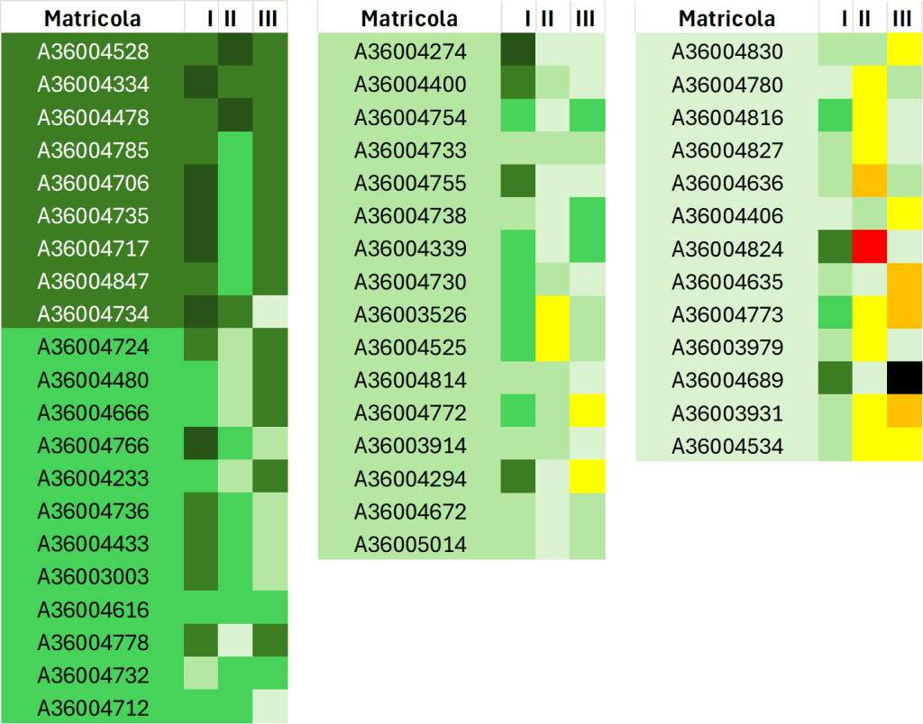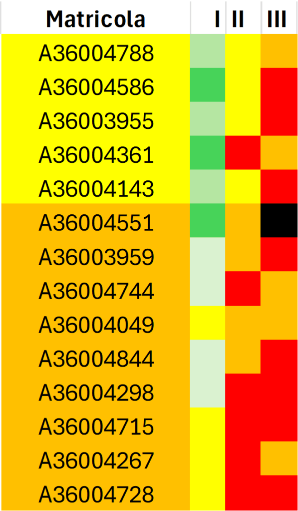 Si ricorda che il nero indica una insufficienza gravissima (voto minore/uguale a 6…e si ricorda che i voti sono espressi in trentesimi).