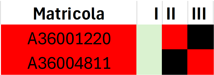 Gli studenti identificati dai colori giallo e arancione, di seguito riportati, sono ammessi con riserva alla quarta prova intercorso. Si ricorda che l’ammissione all’esame orale richiede un punteggio medio minino di 15 punti.