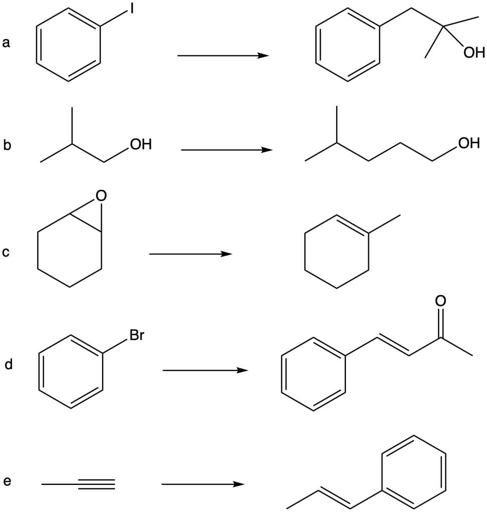 Utilizzando i subrìstrati di partenza indicati, i reagenti inorganici e i catalizzatori necessari e qualsiasi altro composto contenente non più di tre atomi di carbonio, preparare i composti indicati nelle seguenti reazioni: