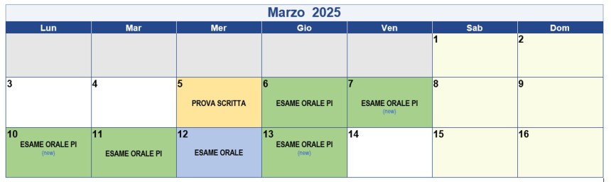 Tutti coloro che supereranno la prova scritta (esame intero) saranno automaticamente prenotati per l’esame orale successivo (indicato in azzurro sul calendario); non sarà quindi necessaria la prenotazione.