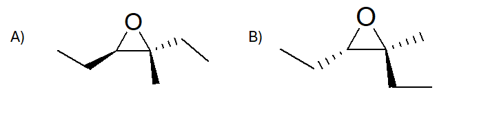 Mostrare il meccanismo di apertura del seguente epossido a) con etanolo in ambiente acido; b) con ione etossido. Mostrare la stereochimica dei prodotti. Attribuire il nome IUPAC all’epossido e ai prodotti formati.