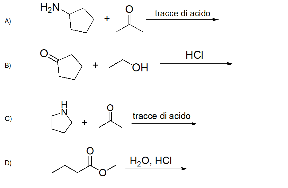 2. Scrivere i prodotti principali delle seguenti reazioni (se avvengono), indicando la stereochimica quando opportuno. Se la reazione non avviene, scrivere “nessuna reazione”