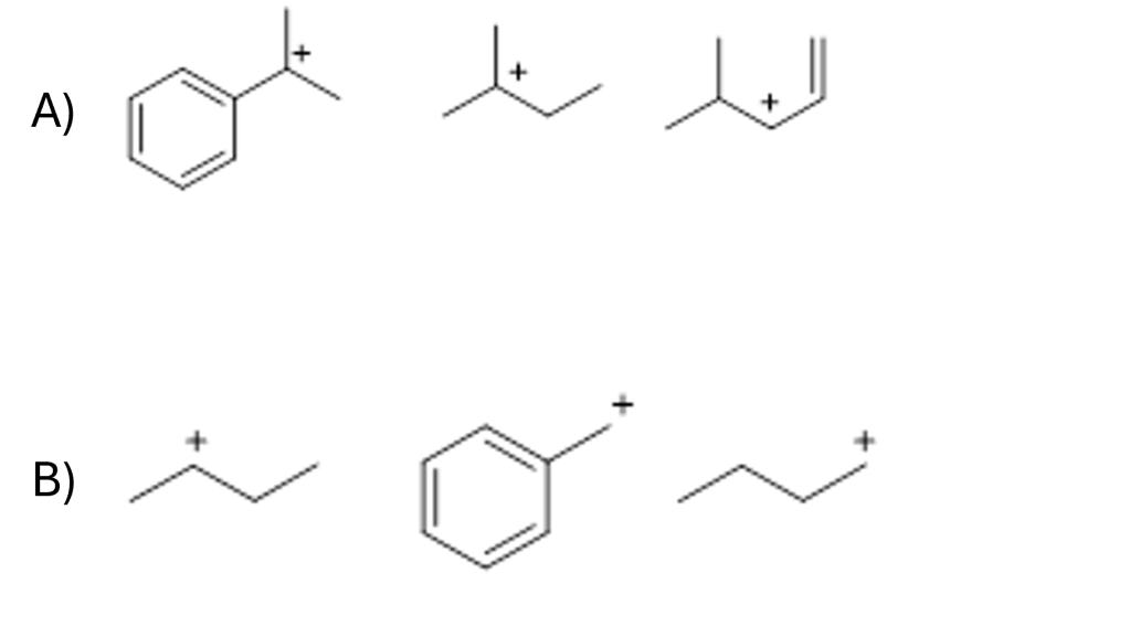 6. A) Scrivere tutte le strutture limite di risonanza del seguente carbocatione