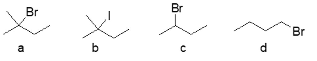 5. Ordina i seguenti composti per reattività crescente in A) un’eliminazione E2; B) una reazione SN2