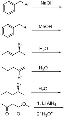 4. Scrivere i prodotti principali delle seguenti reazioni. Indicare anche il meccanismo con cui avvengono. Indicare la stereochimica, quando opportuno.