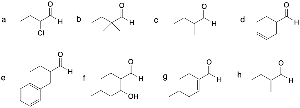 Proporre i reagenti necessari per convertire il butanale in ciascuno dei seguenti prodotti: