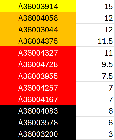 Insieme alle matricole, sono indicati anche i punteggi ottenuti.