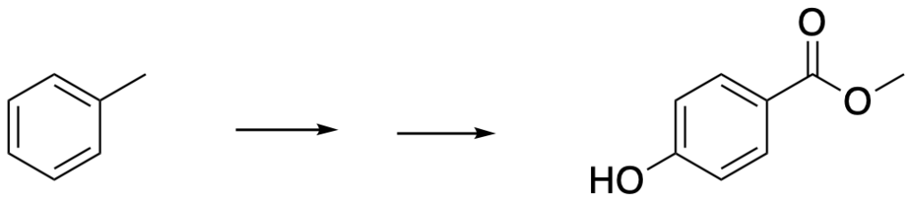 Mostrare la sintesi del metilparaben, un composto ampiamente usato come conservante alimentare. Proporre la sua sintesi a partire dal toluene.