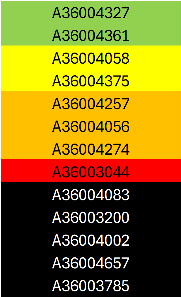 Gli studenti in verde hanno superato la prova e sono ammessi a sostenere la prova orale. Gli studenti in giallo hanno superato con riserva. Anche gli studenti ammessi con riserva potranno sostenere la prova orale.