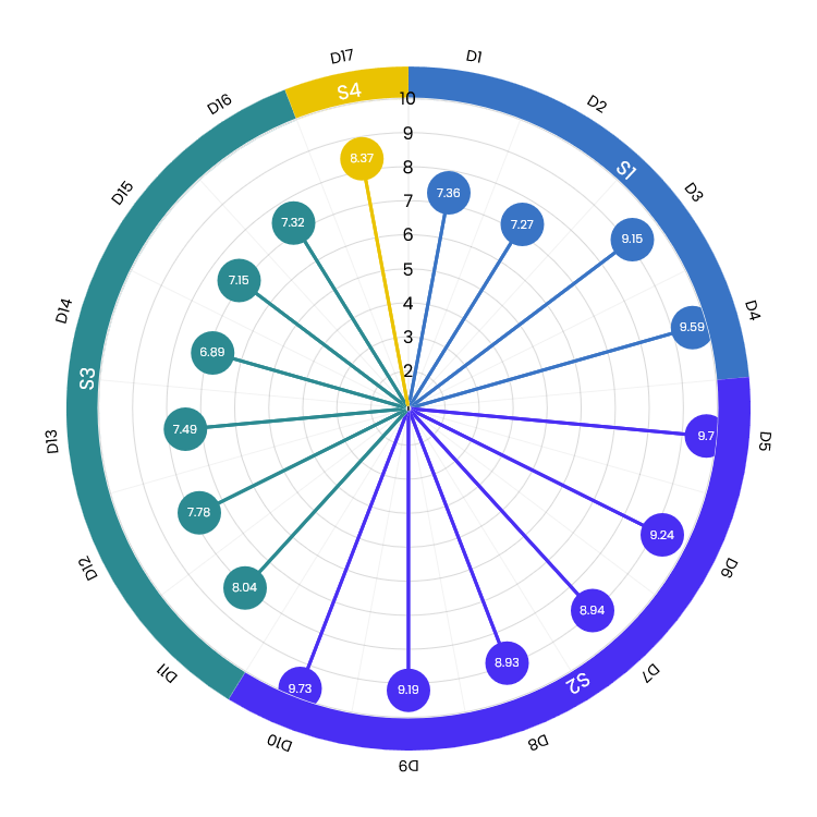 NB: i dati relativi al corso 2024-2025 sono quelli nella colonna “Media”. Per semplicità di consultazione, sotto è riportata di nuovo la tabella con le domande D1-D17