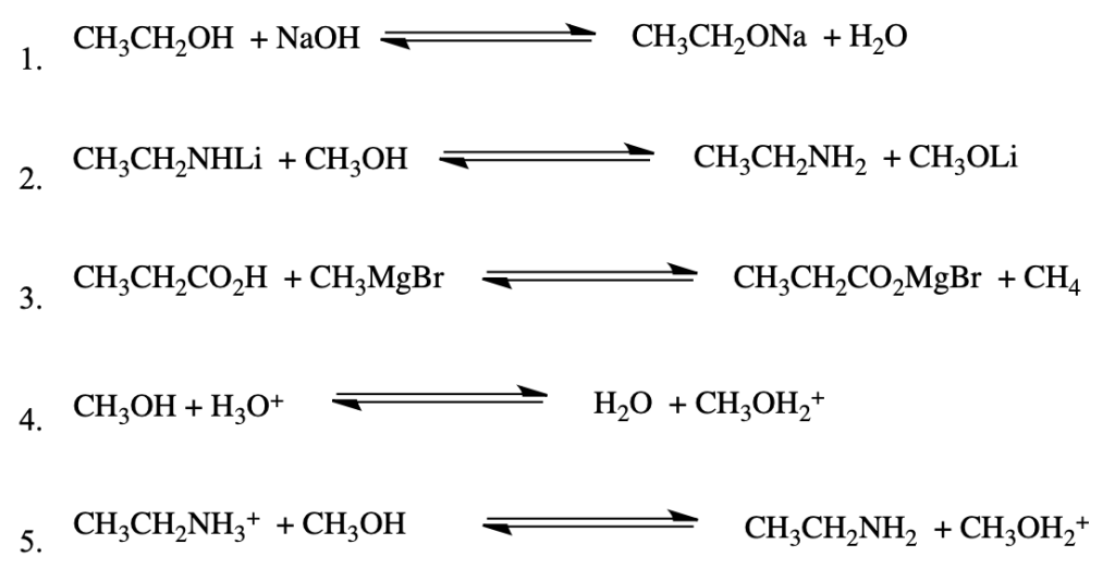Scriverere le frecce nelle seguenti reazioni acido-base, indicando se l’equilibrio favorisce i reagenti o i prodotti