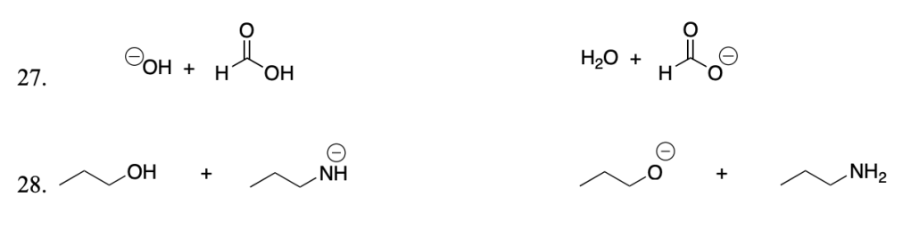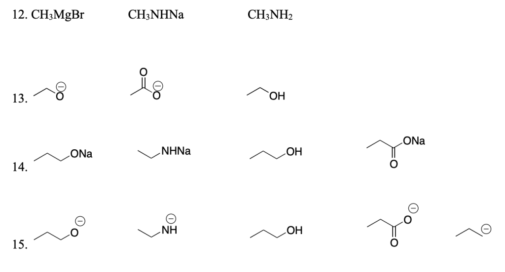 Individuare la base più forte nelle seguenti coppie. (La base più stabile è quella più debole)