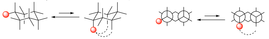 - Il conformero a sedia con un sostituente in posizione equatoriale ha meno tensione sterica ed è perciò più stabile del conformero con il sostituente assiale