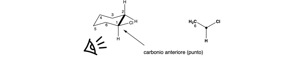 Il carbonio frontale (C1) viene rappresentato da un punto.