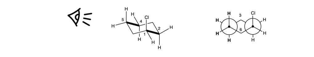 - Disegna la proiezione di Newman del conformero dell’1-clorocicloessano dell’esempio precedente: