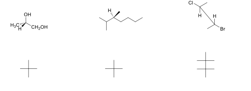 Attribuire le configurazioni R o S a ciascuno dei seguenti composti. Trasformare le strutture tridimensionali in proiezioni di Fisher.