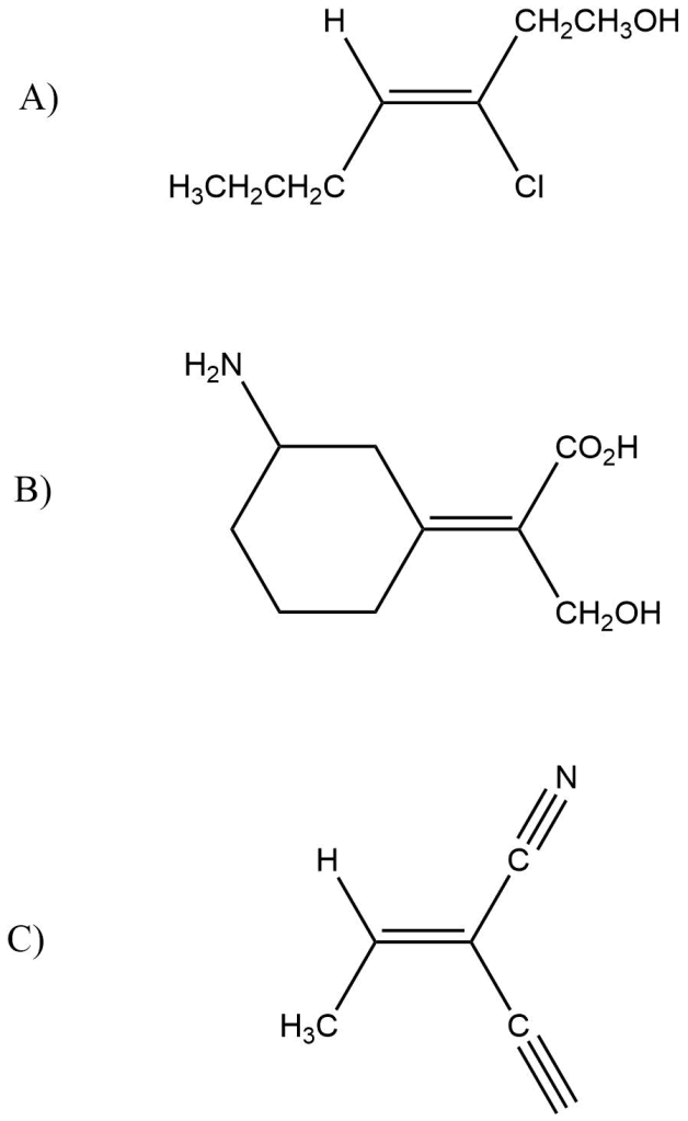 Assegna la configurazione E/Z ai doppi legami presenti nelle seguenti molecole