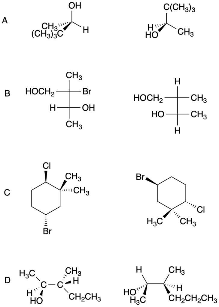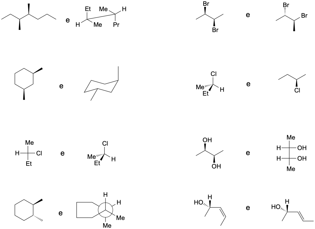 Indicare se le seguenti coppie di strutture sono enantiomeri, diastereoisomeri, isomeri strutturali o composti identici.