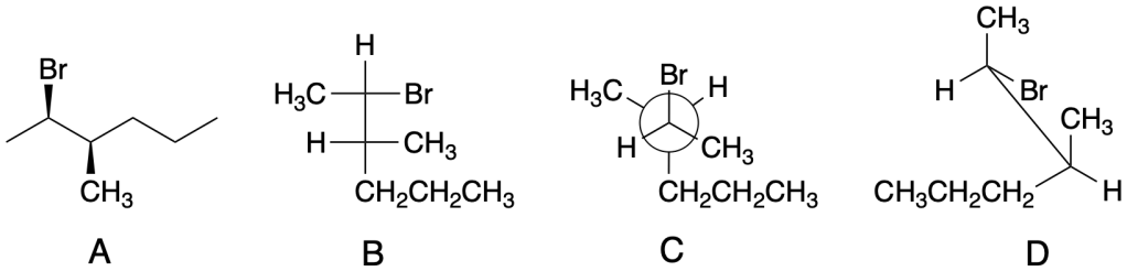 Quale delle seguenti strutture corrisponde al (2R,3S)-2-bromo-3-metilesano?