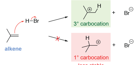 -Per le reazioni che prevedono l’intervento di carbocationi, la geometria dell’alchene iniziale non è rilevante (poiché la reazione non è stereospecifica)