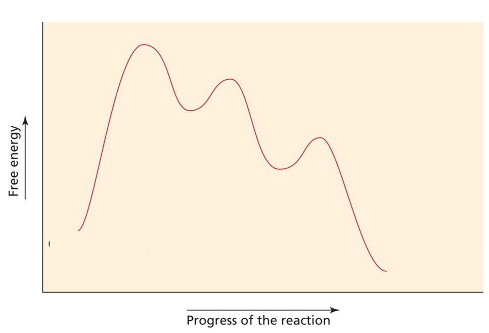 2) disegnare, per ciascuna reazione, un grafico della variazione dell’energia libera rispetto alla coordinata di reazione in cui vengono indicate le strutture dei reagenti, degli stati di transizione, degli intermedi e dei prodotti;