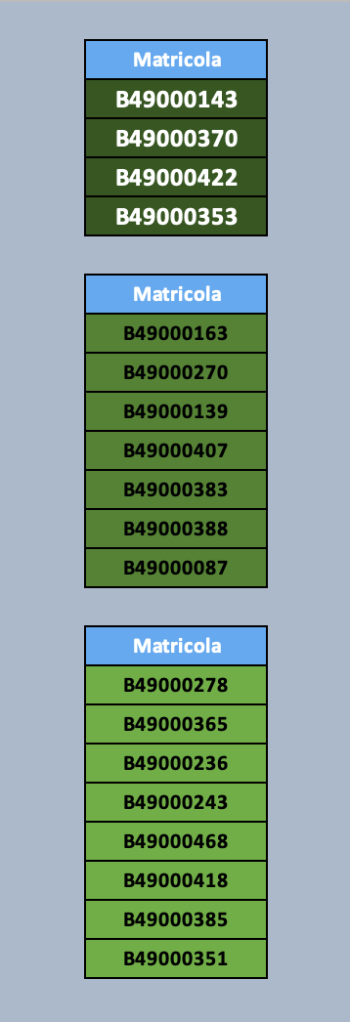 - Verde: prova superata con sufficienza; verde scuro indica voti più elevati. Gli studenti in questa categoria sono ammessi a sostenere la terza prova intercorso.