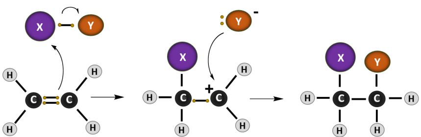 Mostrare i meccanismi delle seguenti reazioni di alogenazione degli alcheni