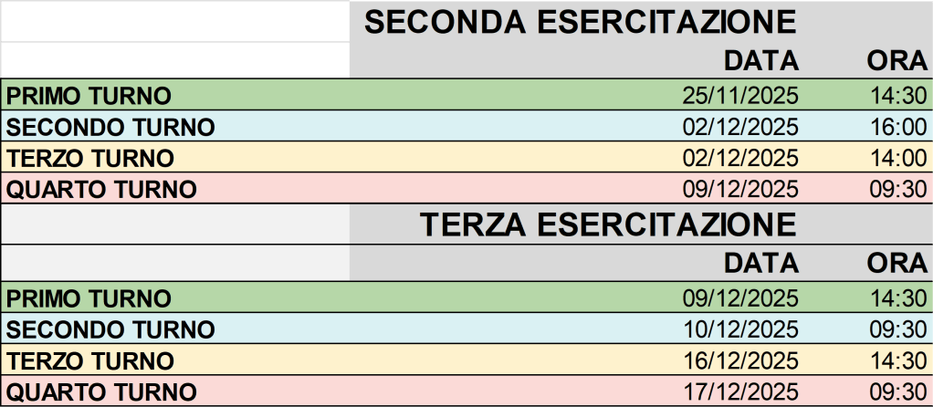 Contestualmente, vi comunico anche le date relative alla terza esercitazione (dettagliate nel seguente calendario):
