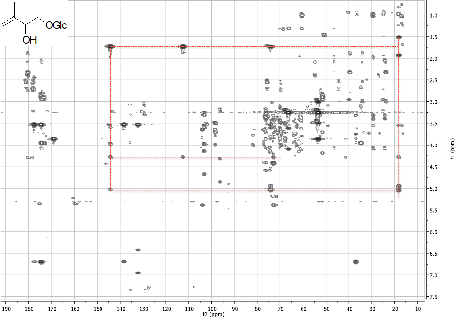 Grazie alla combinazione delle informazioni che si ottengono dai diversi spettri 2D NMR, è possibile identificare i costituenti dell’estratto anche in miscela. Per metaboliti già noti, a questo punto sarà possibile confrontare i dati NMR con quelli riportati in letteratura o con quelli degli standard (a patto che siano acquisiti nello stesso solvente). Per i composti identificati per la prima volta, al fine di confermare la struttura, saranno necessari l’isolamento (che a questo punto sarà facilitato dalle informazioni preliminari in nostro possesso circa la struttura del composto) e la completa caratterizzazione strutturale mediante tecniche spettroscopiche.