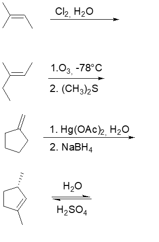 1. Esistono due isomeri geometrici del 3-esene. Per reazione con Cl2 in CH2Cl2, uno dei due darà due prodotti, l’altro solo uno.