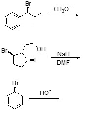 2. Scrivere i prodotti principali di eliminazione delle seguenti reazioni, indicando, per ciascuna reazione, se procede con meccanismo E1 o E2