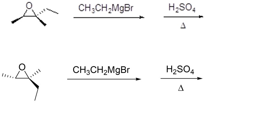 5. I reattivi di Grignard sono tra i nucleofili che possono aprire gli epossidi. Mostrare il meccanismo e i prodotti della seguente sequenza di reazioni (indicando la stereochimica dei prodotti):