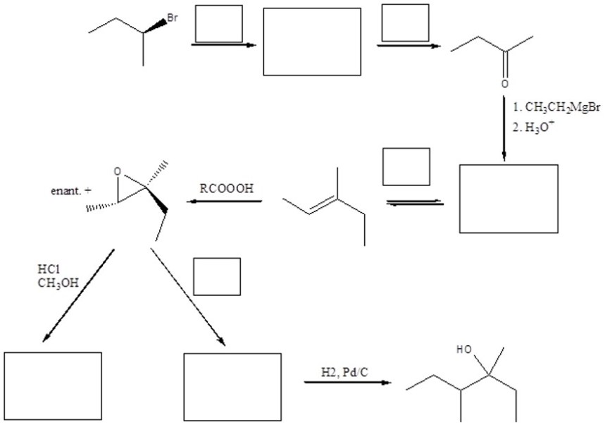 7. Completare il seguente schema inserendo le condizioni di reazione o i prodotti mancanti. Evidenziare la stereochimica quando opportuno.